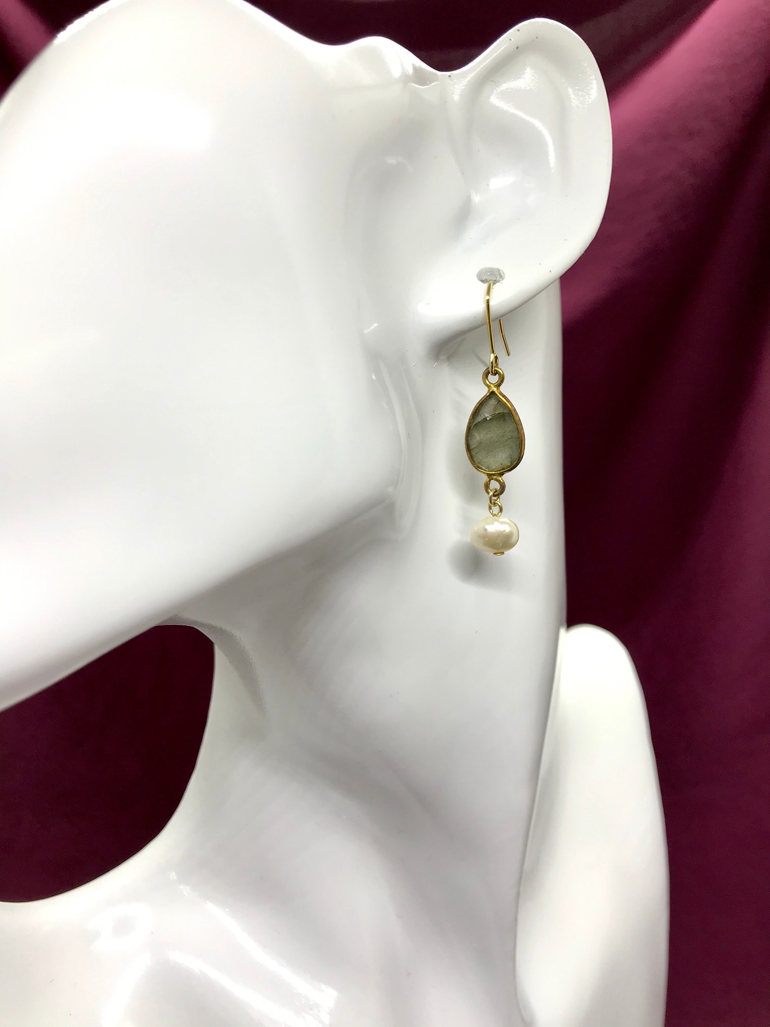 しずく型のラブラドライトに淡水パールを合わせて。