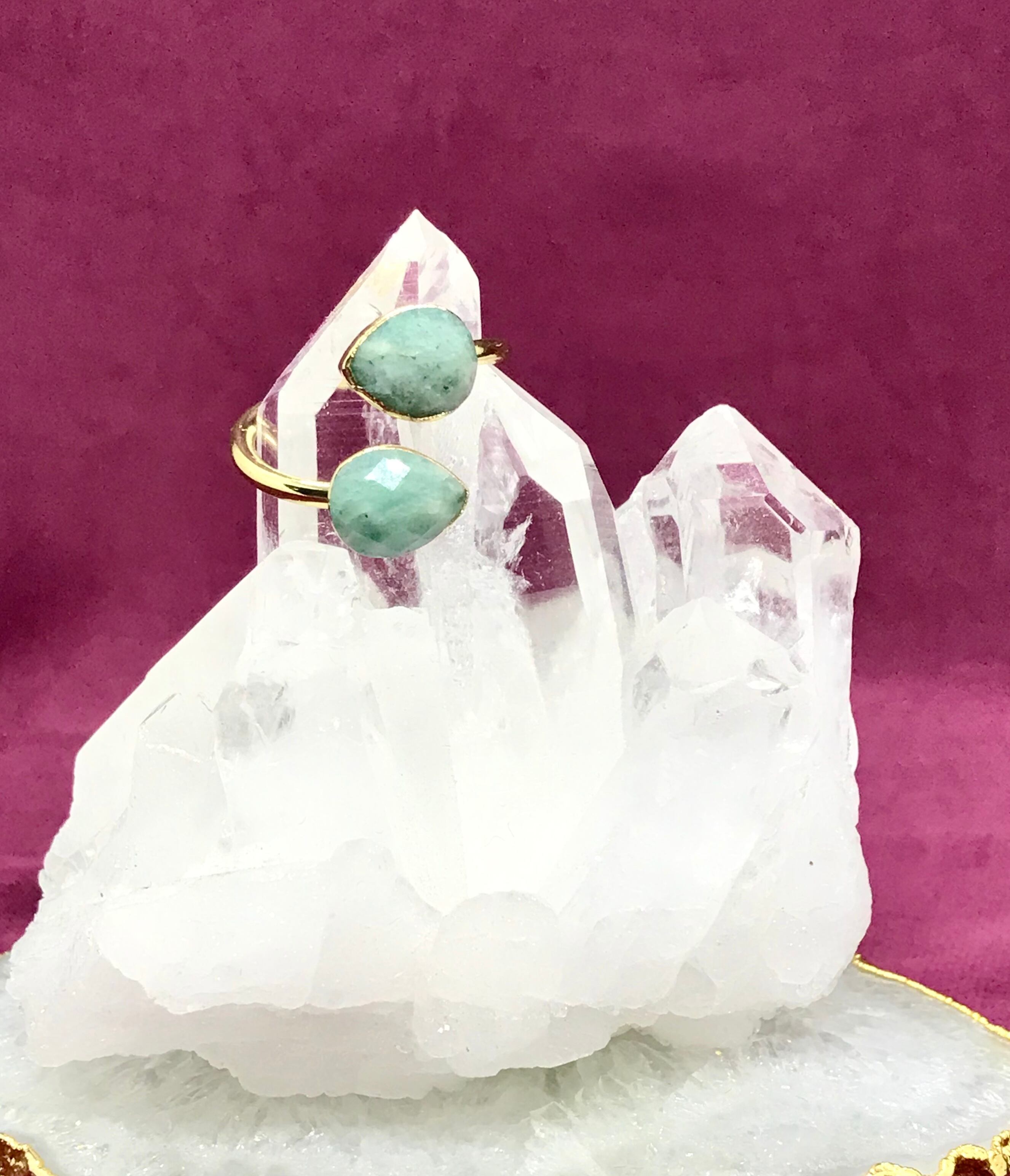 重ね付けのように見える豪華なアマゾナイトリング。