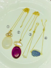 ②パール&アゲート ネックレス(フューシャピンク)・・・パール:包容力、女性らしい魅力、愛情 /アゲート : 人間関係、精神面の修復、家庭円満
