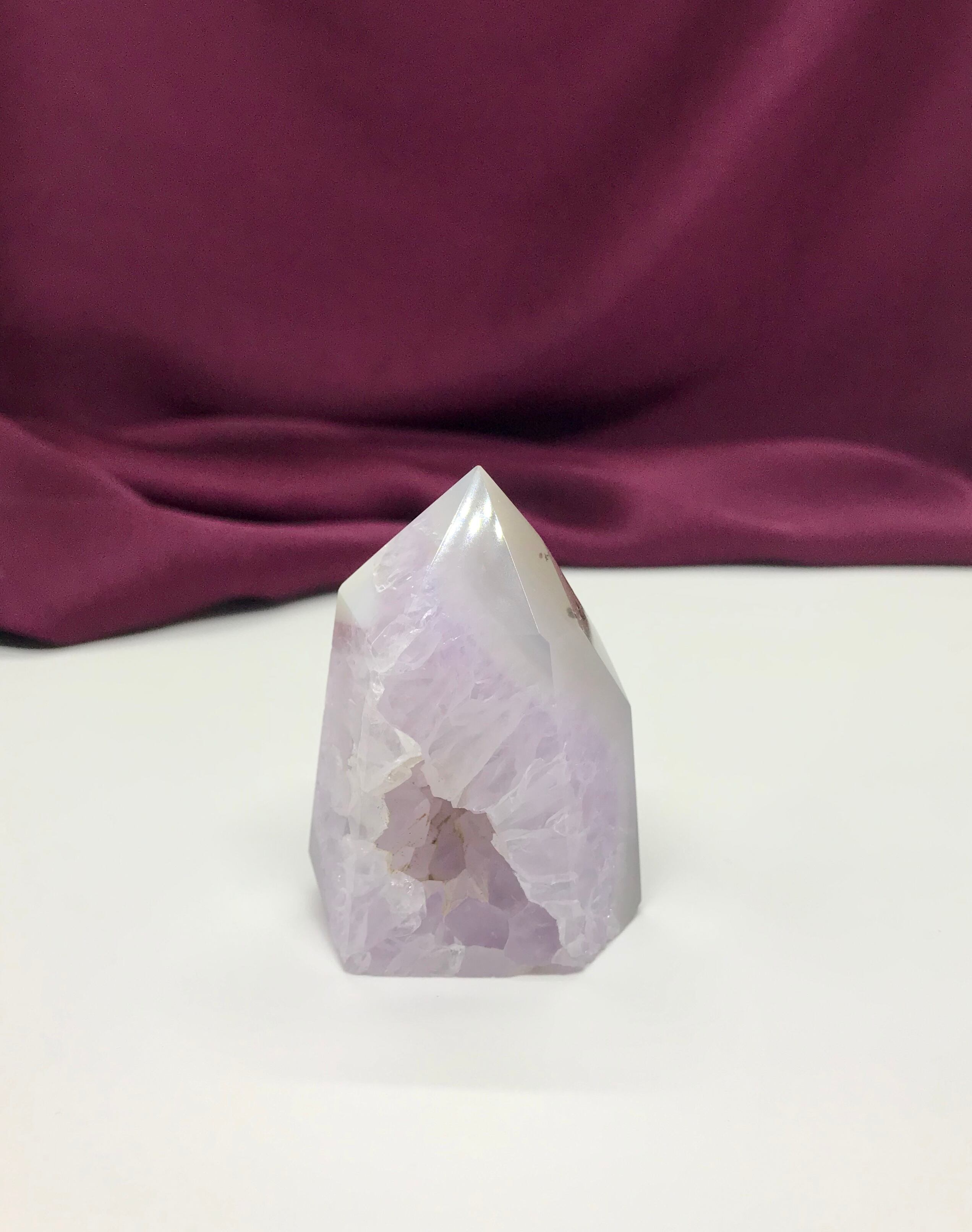 瑪瑙にアメジストが優しく輝いているジオードです。