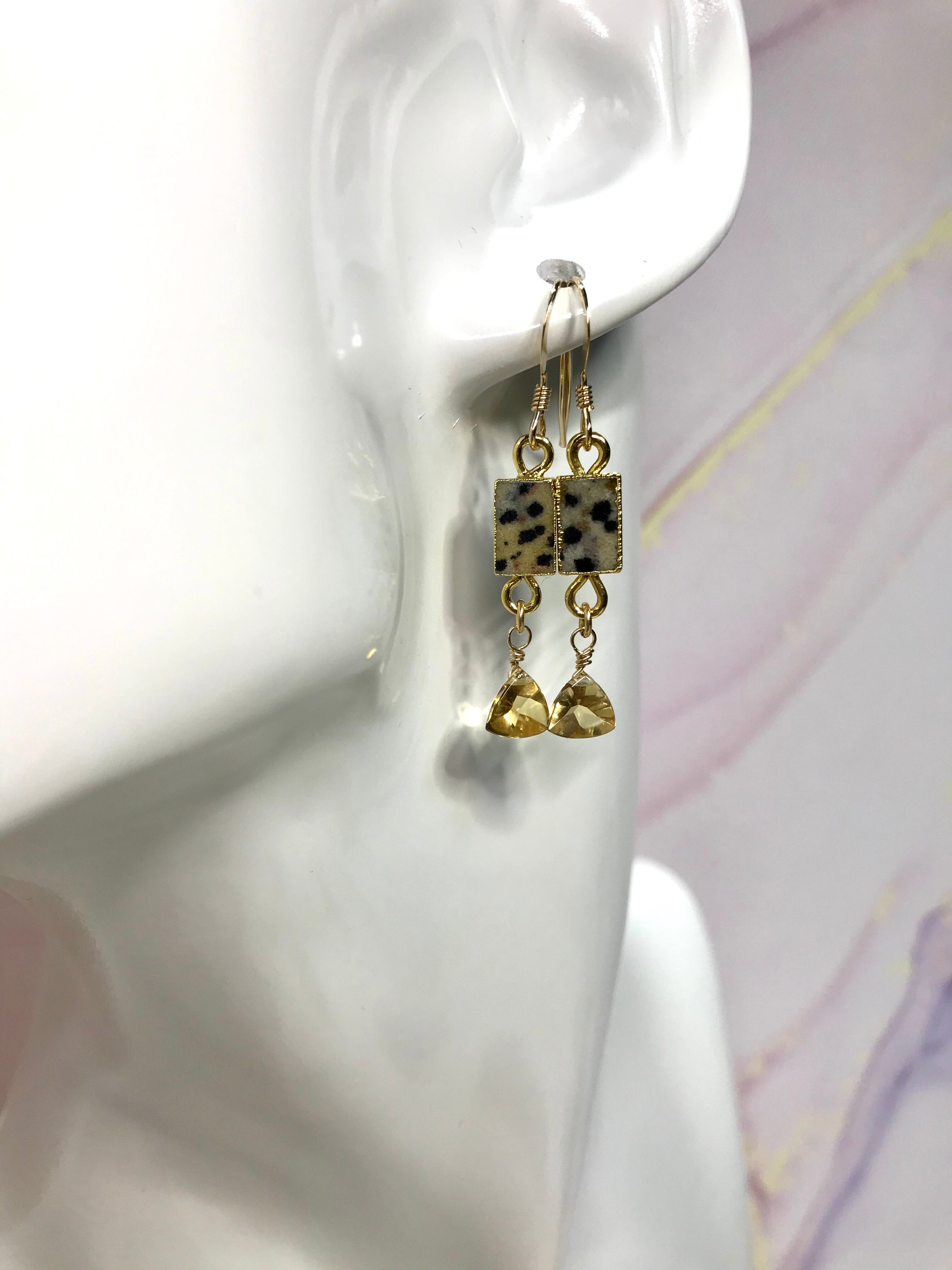 ダルメシアンジャスパー&トリリアンカットシトリンピアス